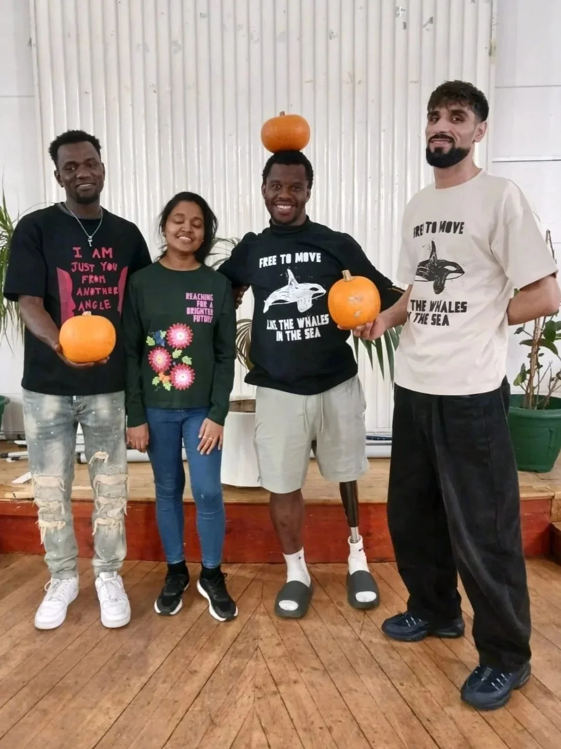 Brighter Futures members modelling their T-shirt range in October 2025