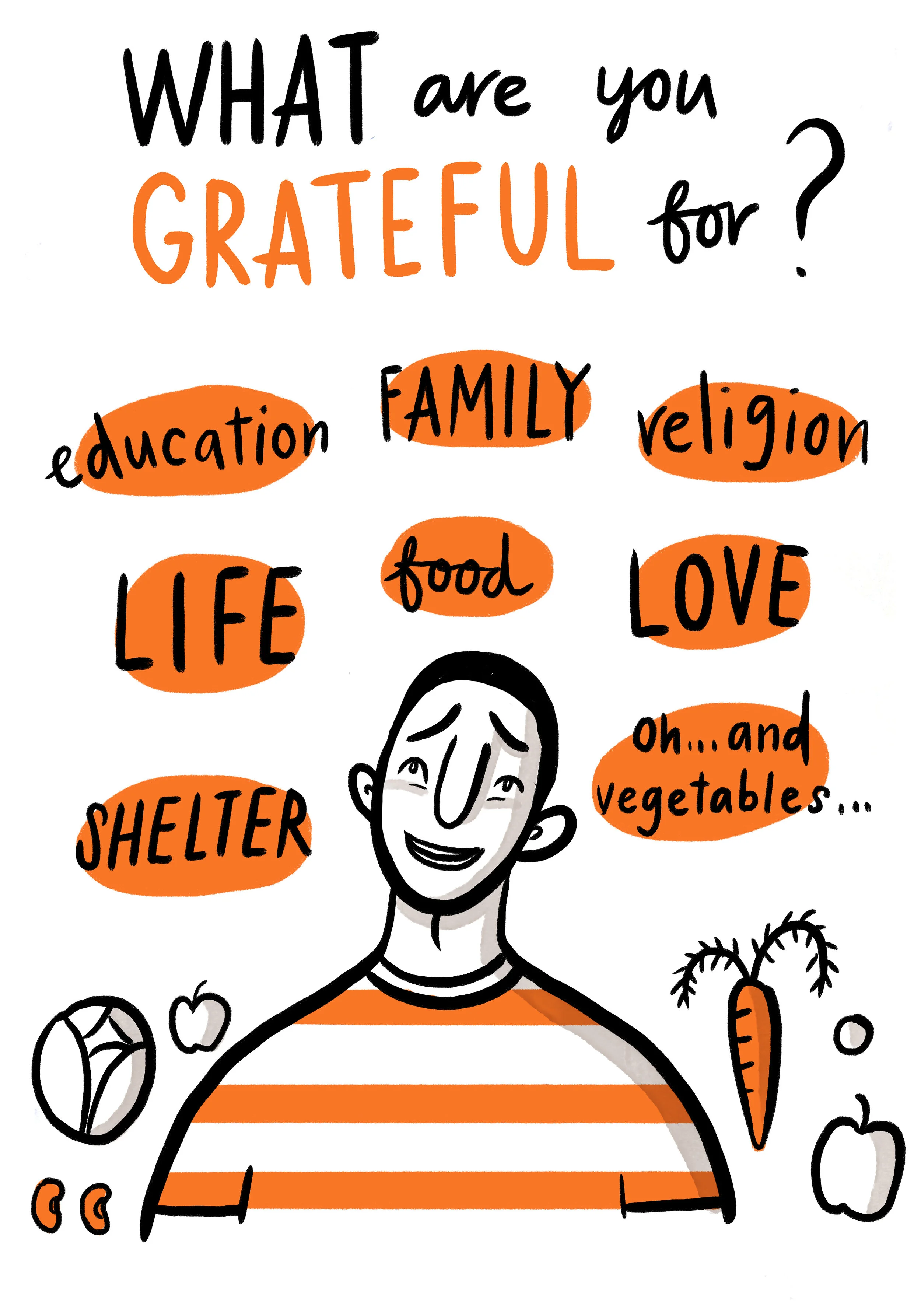Ask the groups to list as many things they can think of that they are grateful for.